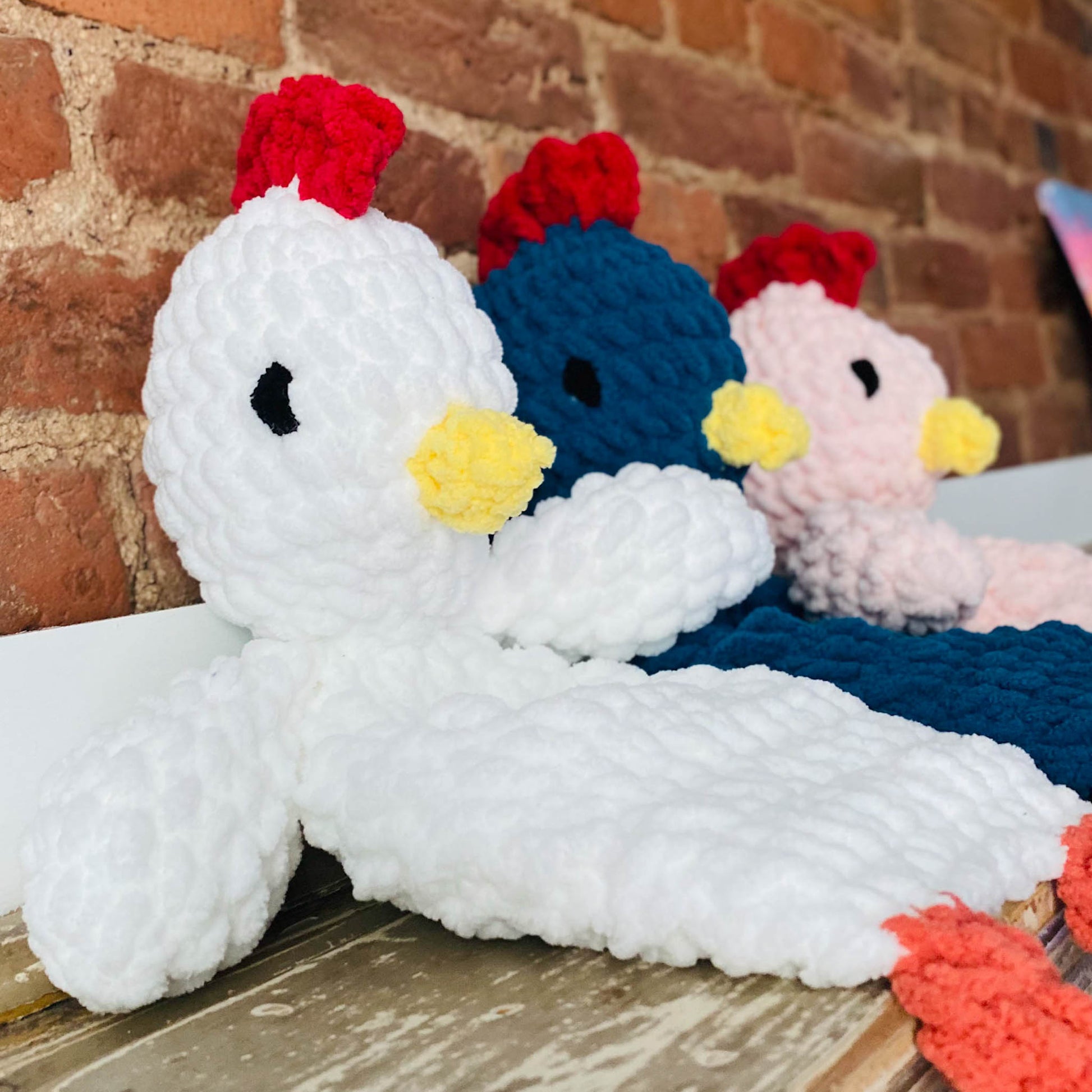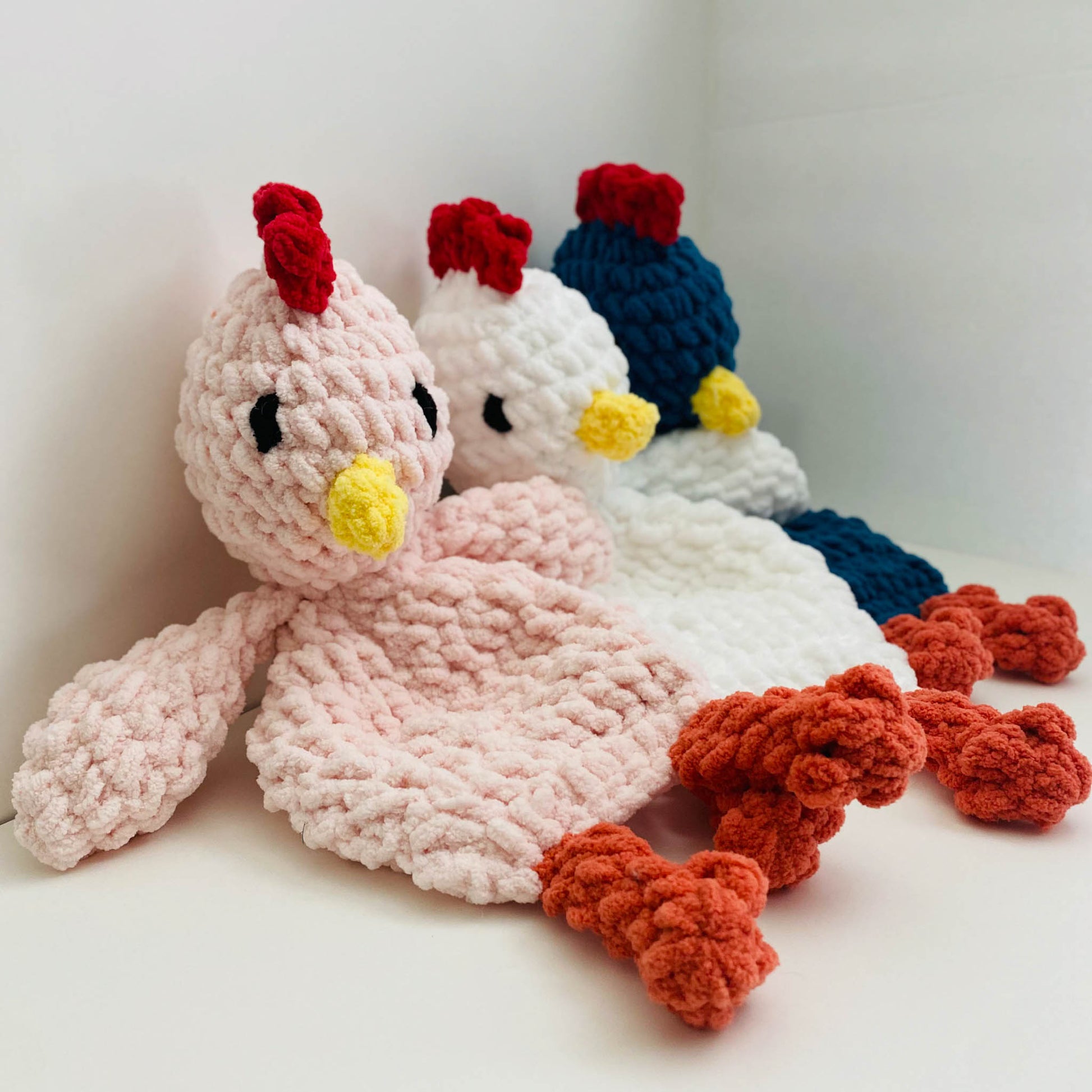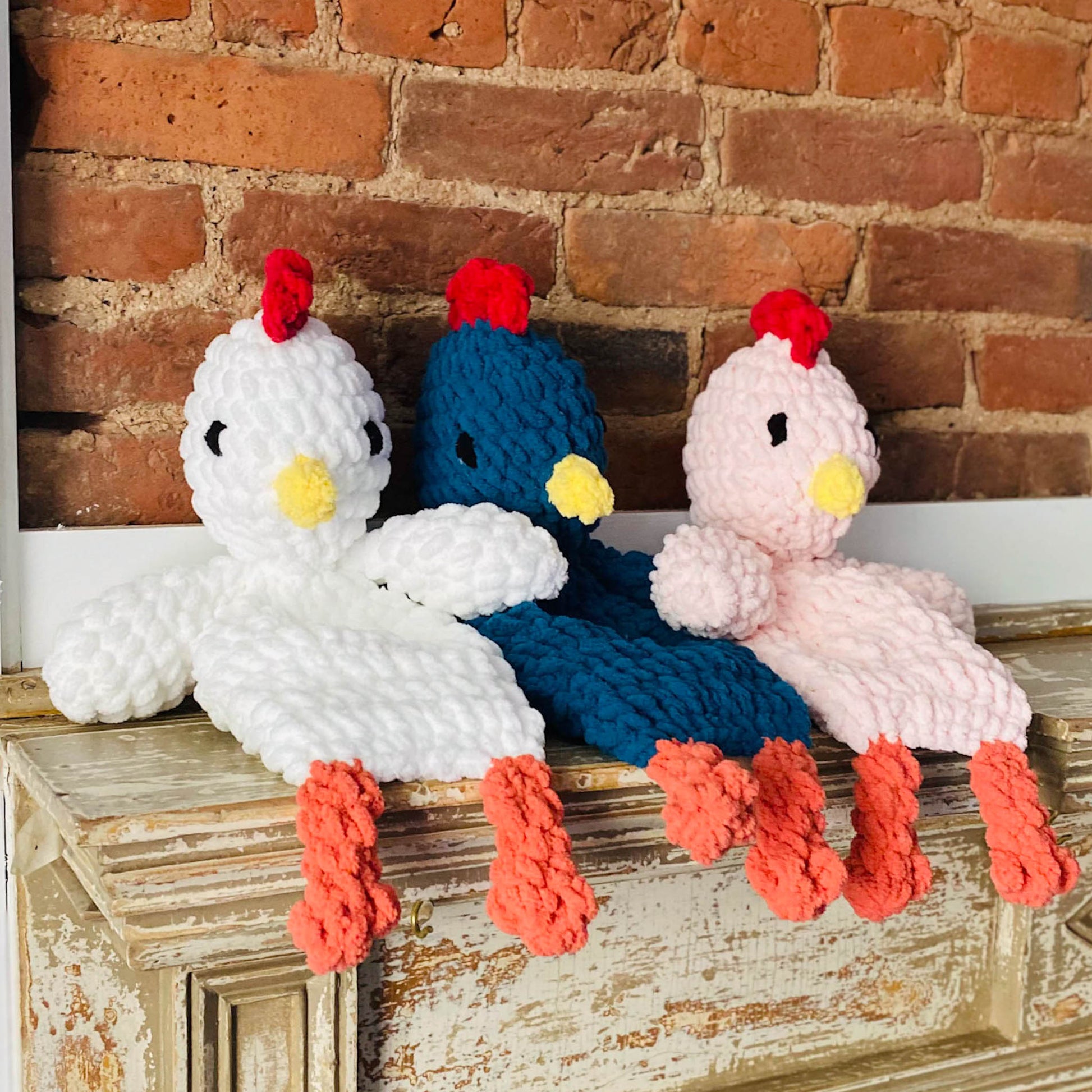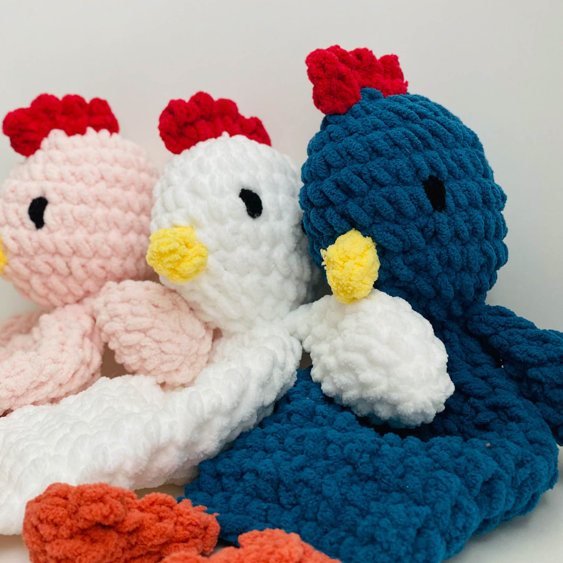 This adorable white chicken snuggler will be the perfect gift for your kid or anyone who loves chickens! Do you travel a lot with your baby? This soft chicken will be the perfect travel lovey for your kid! The yarn is so soft that it will bring comfort at any moment.