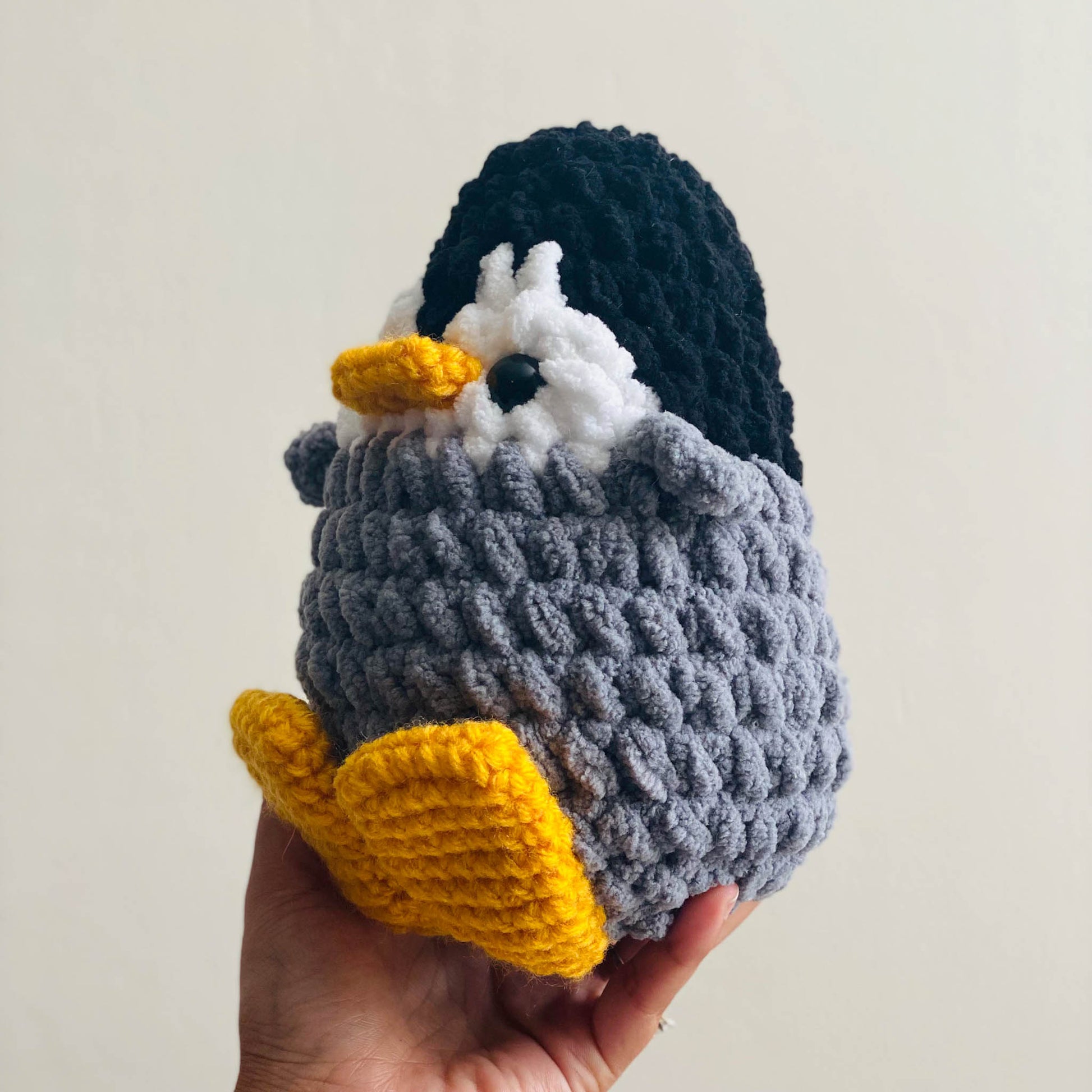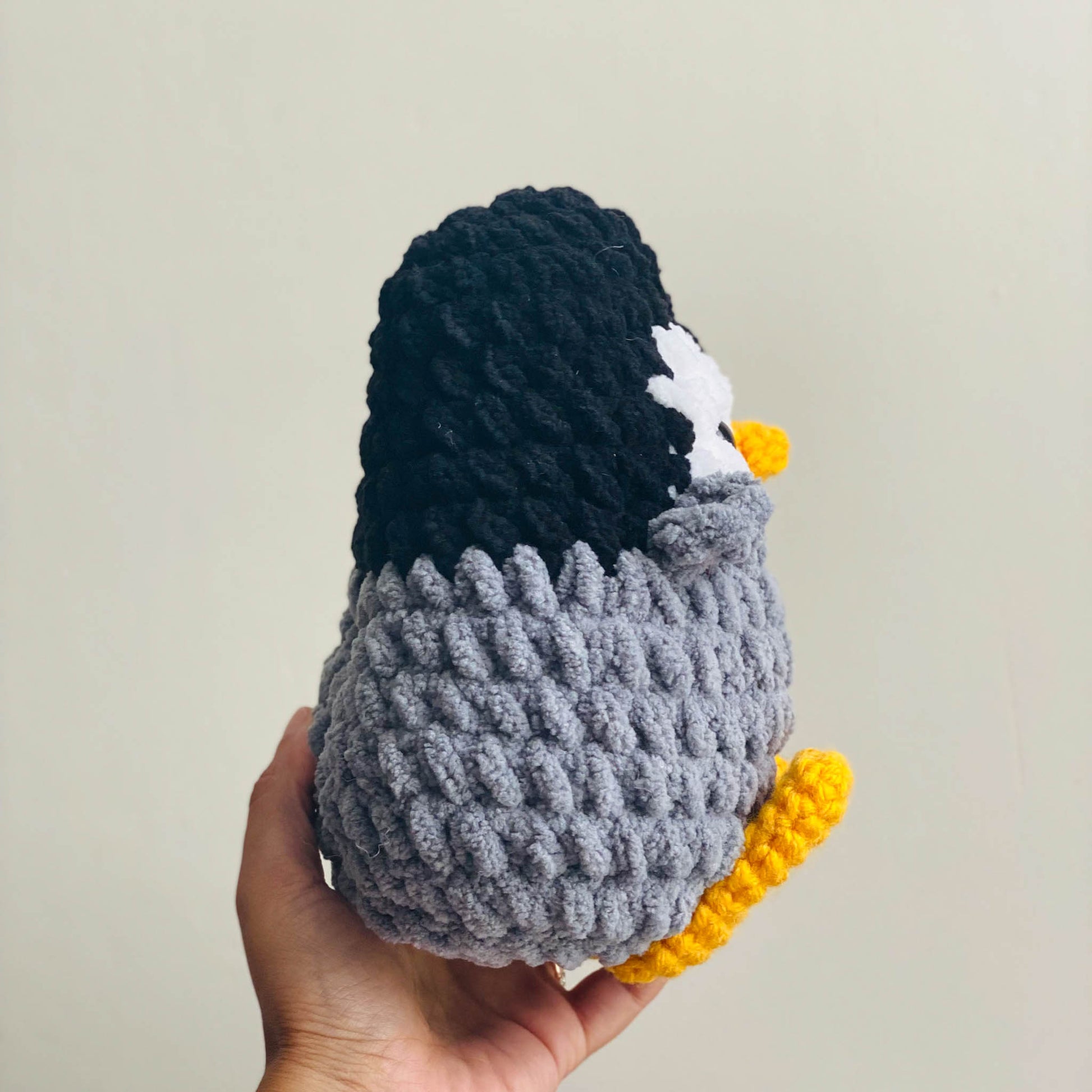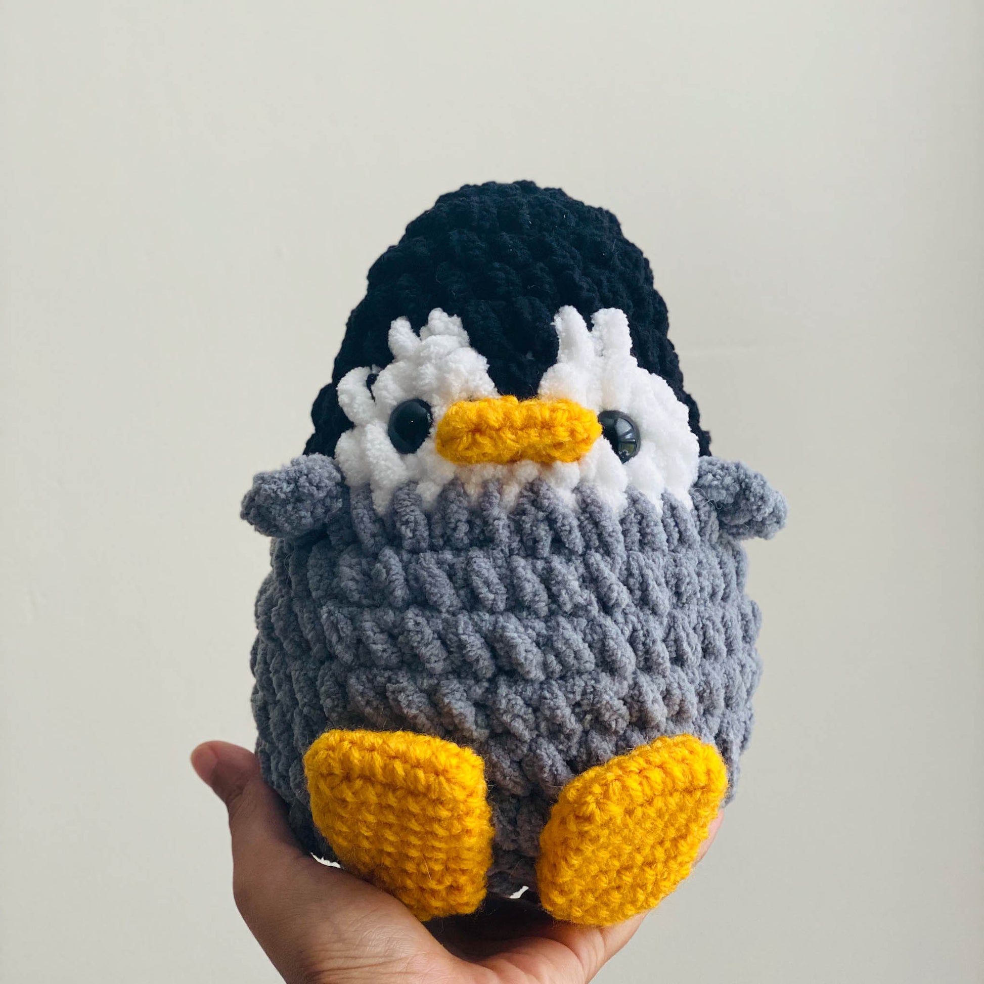This penguin is made using 100% polyester yarn, giving it an incredibly soft and comfy texture. It is stuffed with 100% polyester fiber, making it so squishy.