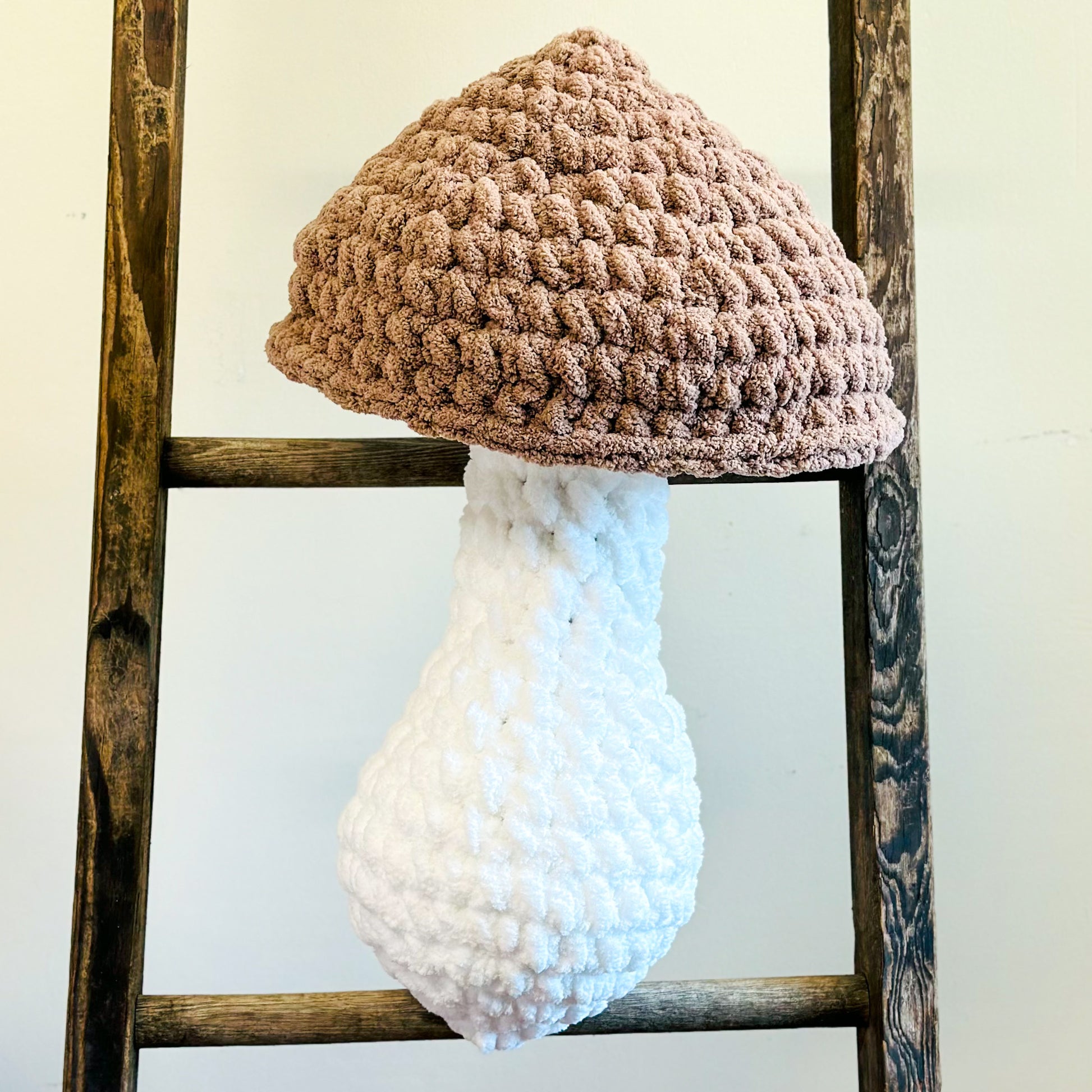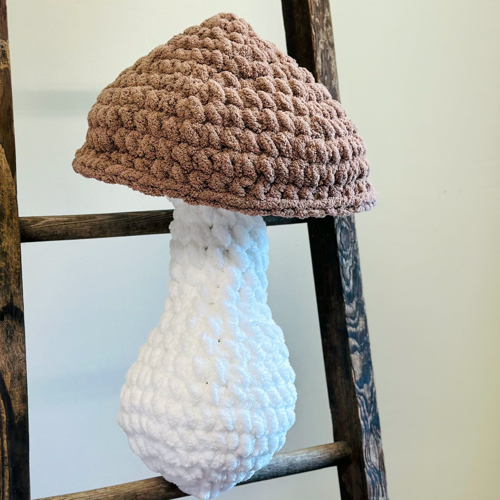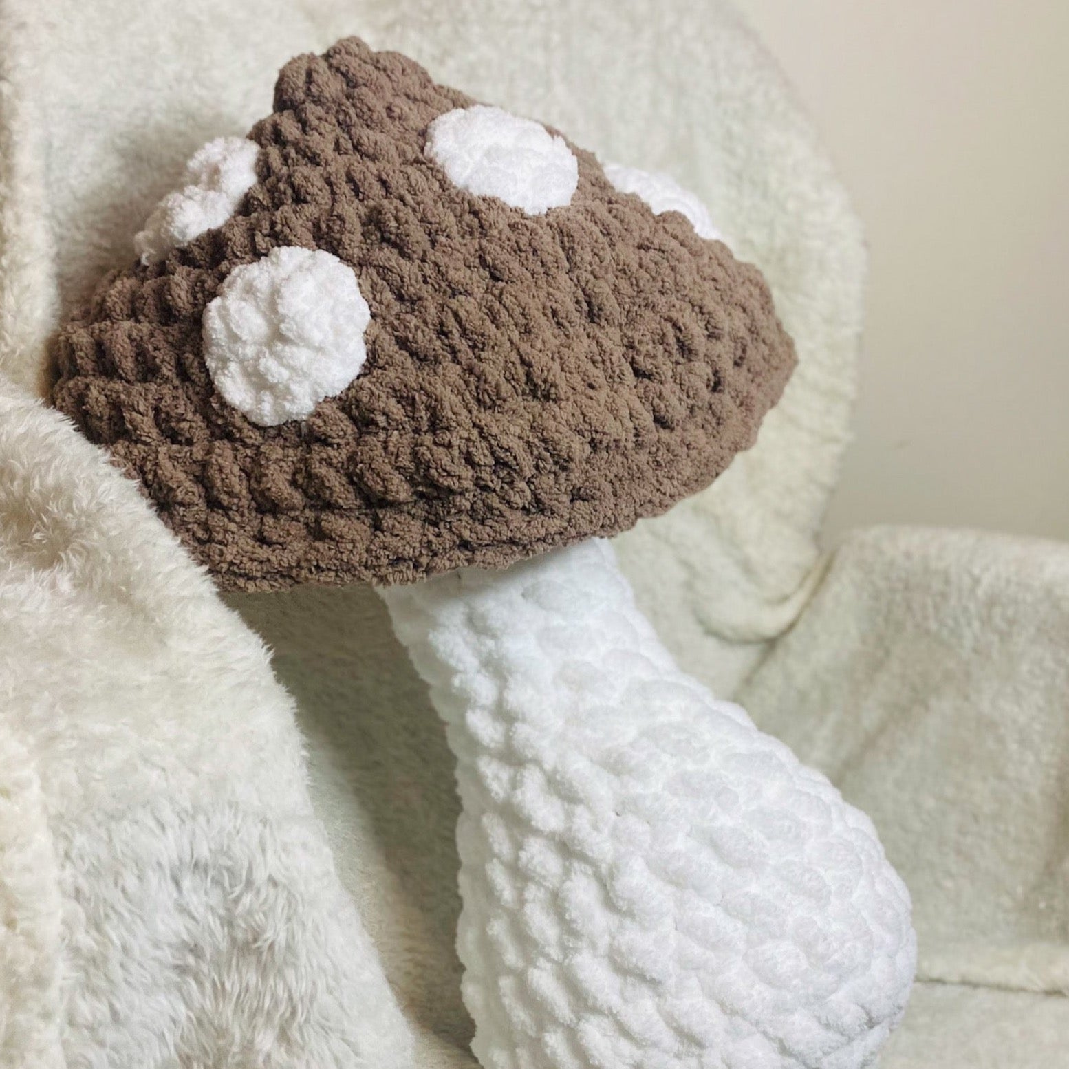 This big crochet mushroom pillow is the perfect accessory to decorate your bedroom, living room, nursery room, or any room in your home! It's tall enough to cuddle while you watch your favorite movies or shows or when you go to bed. If you like camping or going on adventures, this pillow would be your perfect snuggle buddy too!