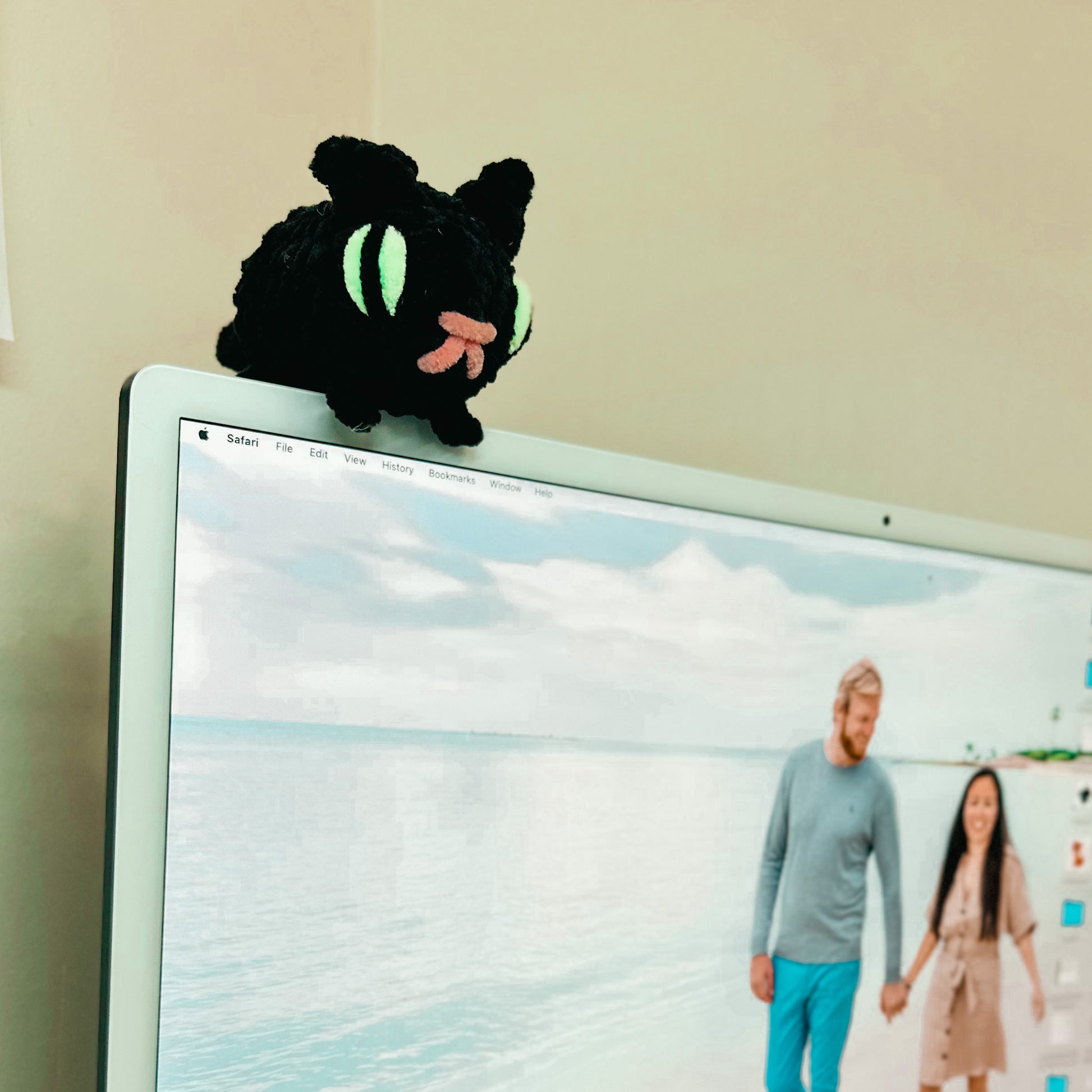 Our crocheted mini black cat plushie is the purr-fect way to brighten up your day.