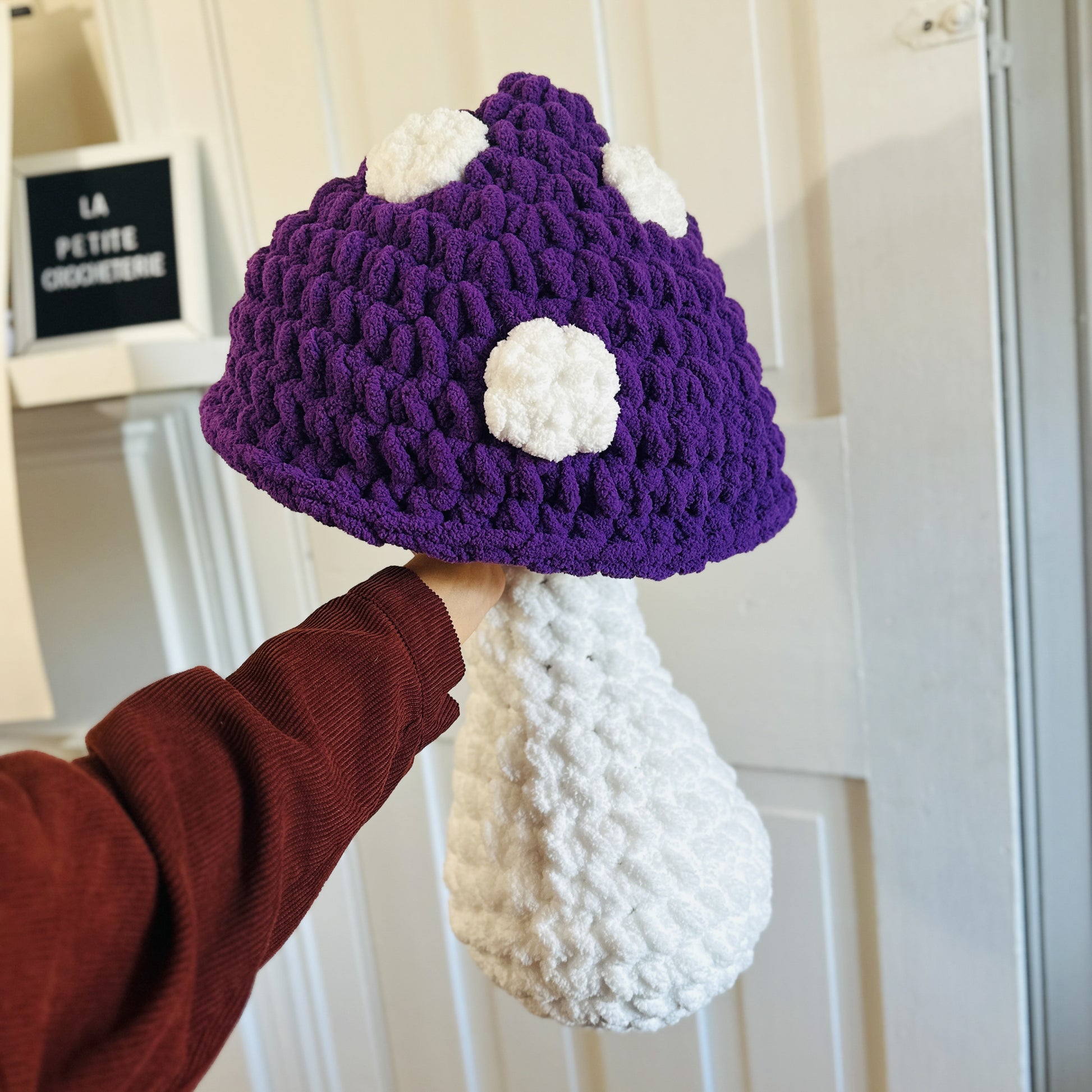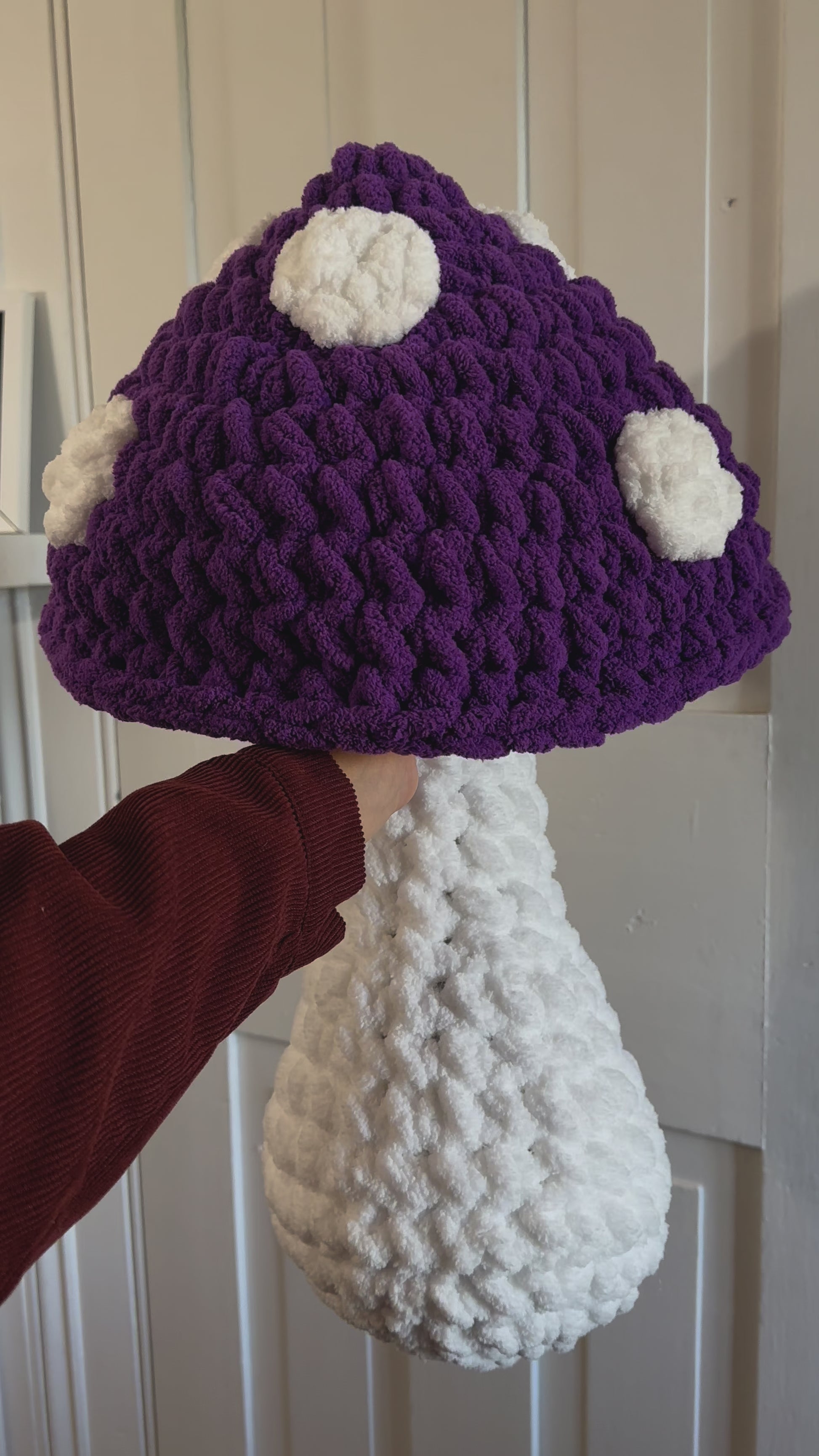 This big crochet mushroom pillow is the perfect accessory to decorate your bedroom, living room, nursery room, or any room in your home! It's tall enough to cuddle while you watch your favorite movies or shows or when you go to bed. If you like camping or going on adventures, this pillow would be your perfect snuggle buddy too!