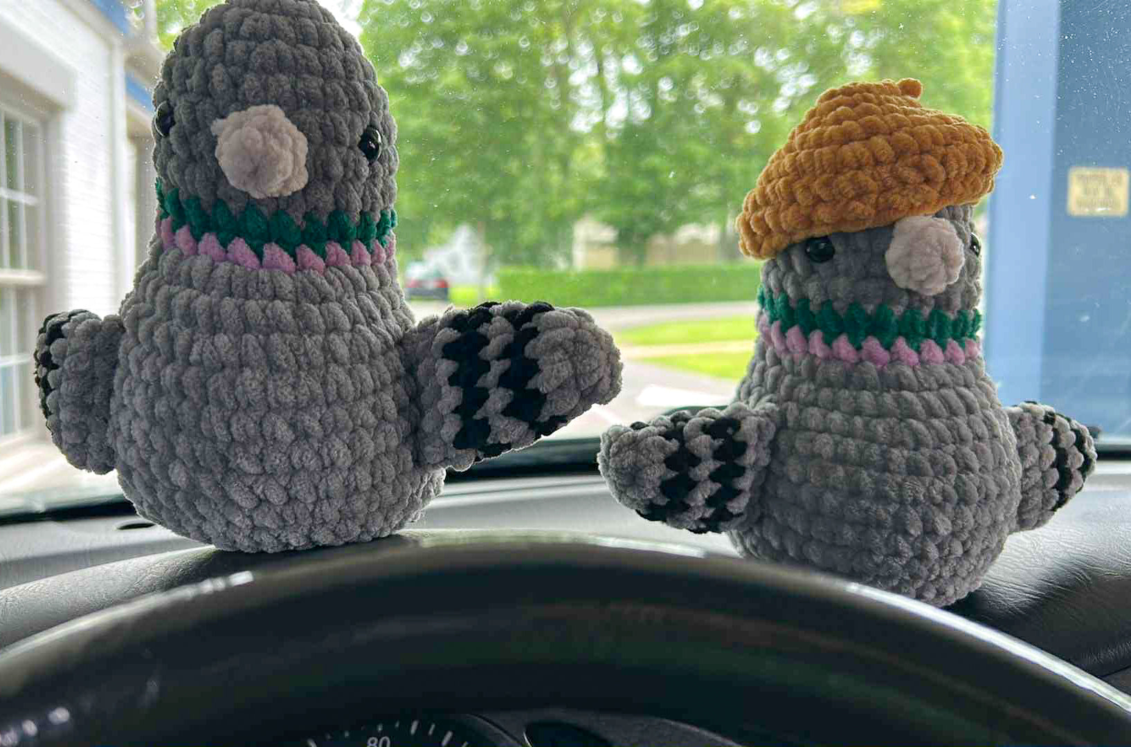Meet your new feathered friend! This soft and squishy crochet pigeon is full of charm, crafted with love and extra fluff for maximum cuddliness. Inspired by the everyday city pigeon but made way cuter, each bird features classic gray tones with a colorful neck ring and tiny black eyes that give it personality and heart.