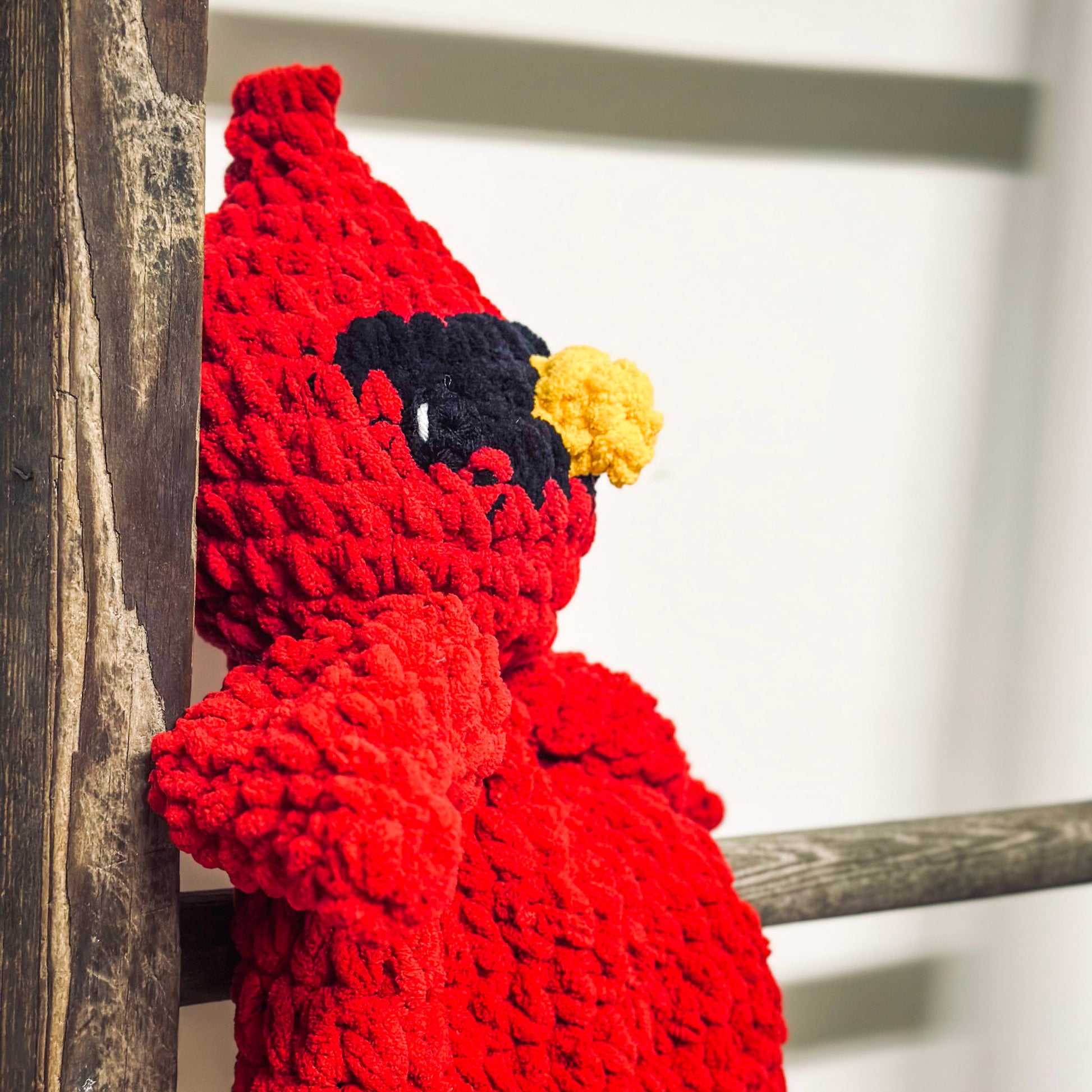 The Red Cardinal Snuggler is a handmade crochet masterpiece sure to bring warmth and joy to your home. Crafted from soft and durable polyester yarn, this snuggler will add the perfect splash of nature to your nursery decor or Easter celebration.