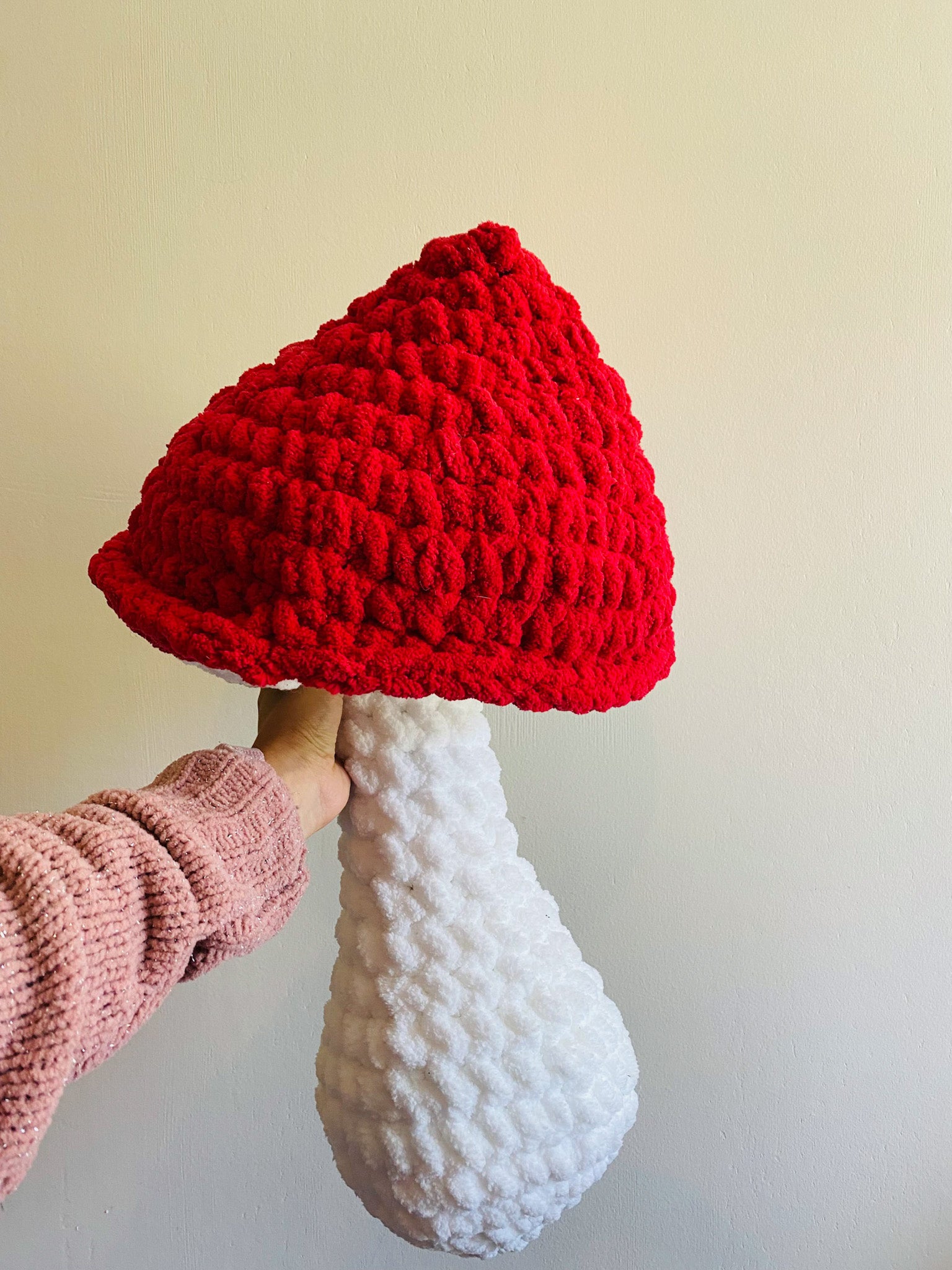 This big crochet mushroom pillow is the perfect accessory to decorate your bedroom, living room, nursery room, or any room in your home! It's tall enough to cuddle while you watch your favorite movies or shows or when you go to bed. If you like camping or going on adventures, this pillow would be your perfect snuggle buddy too!